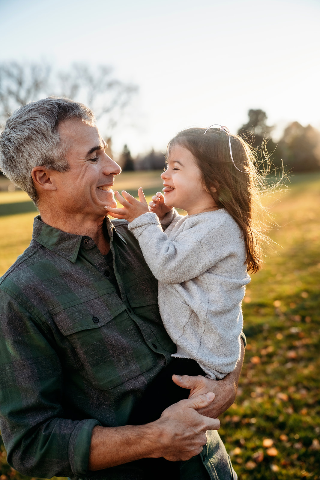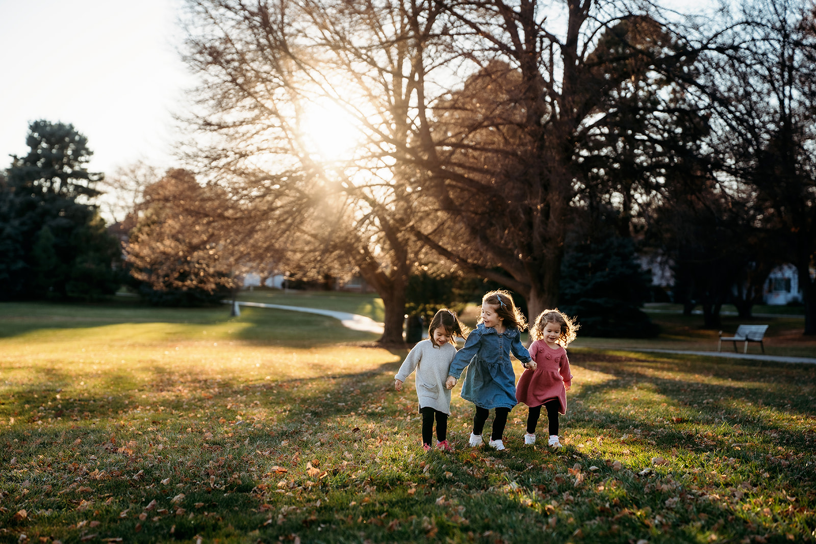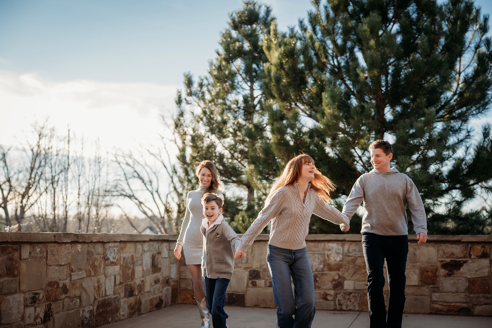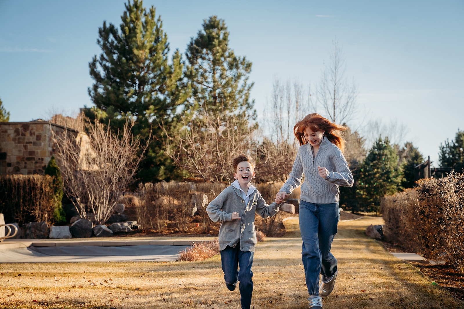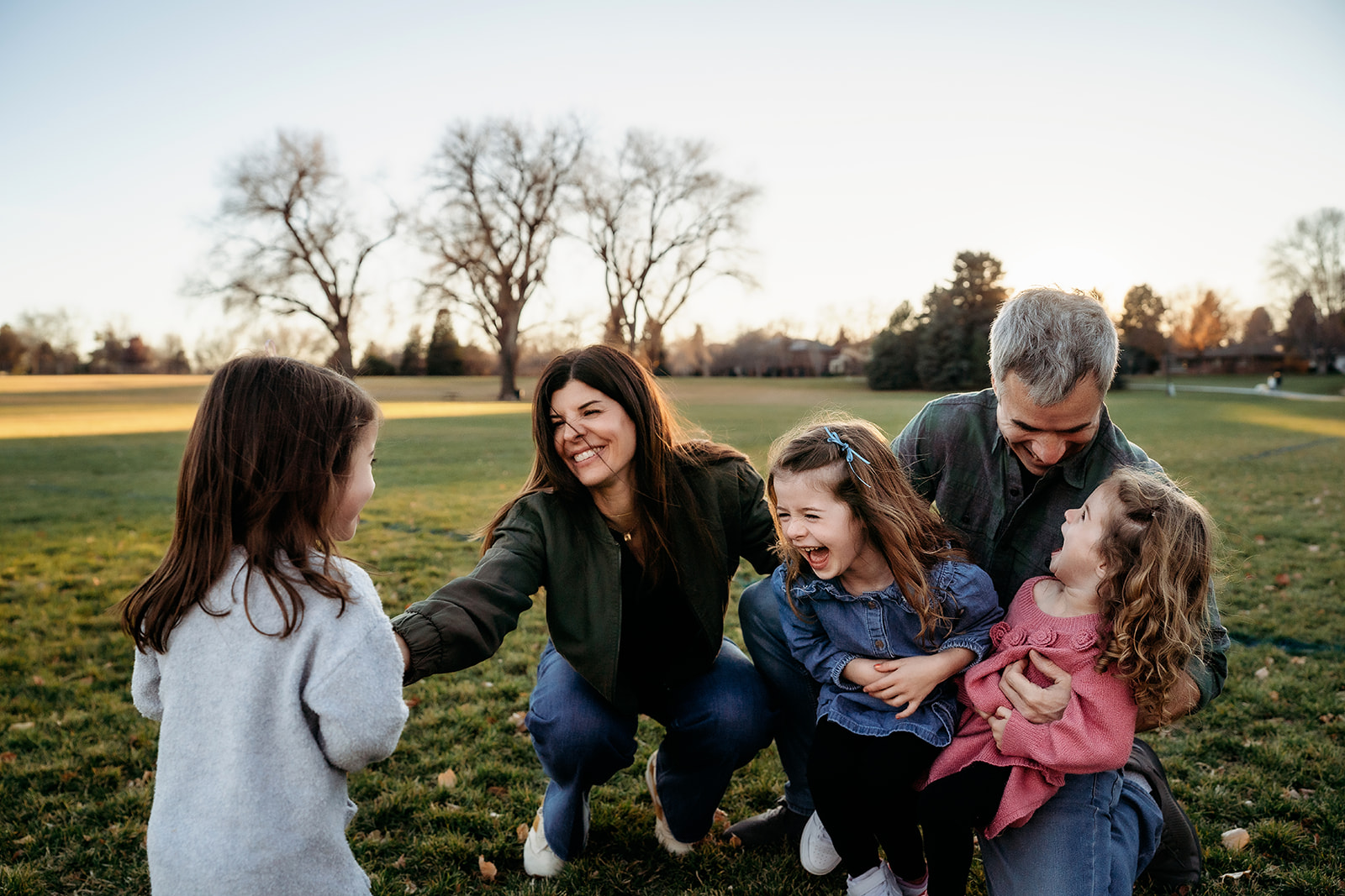 In all my years as a Denver family photographer, I can confidently say that great light, connection, and movement matter far more than perfectly styled landscaping. A small patio, a patch of grass, a hammock, or even a favorite play area can create beautiful and meaningful backyard family photos. Sometimes we’ll also incorporate nearby spaces like a neighborhood park (like we did with the Cooper family) for a little extra room to play.