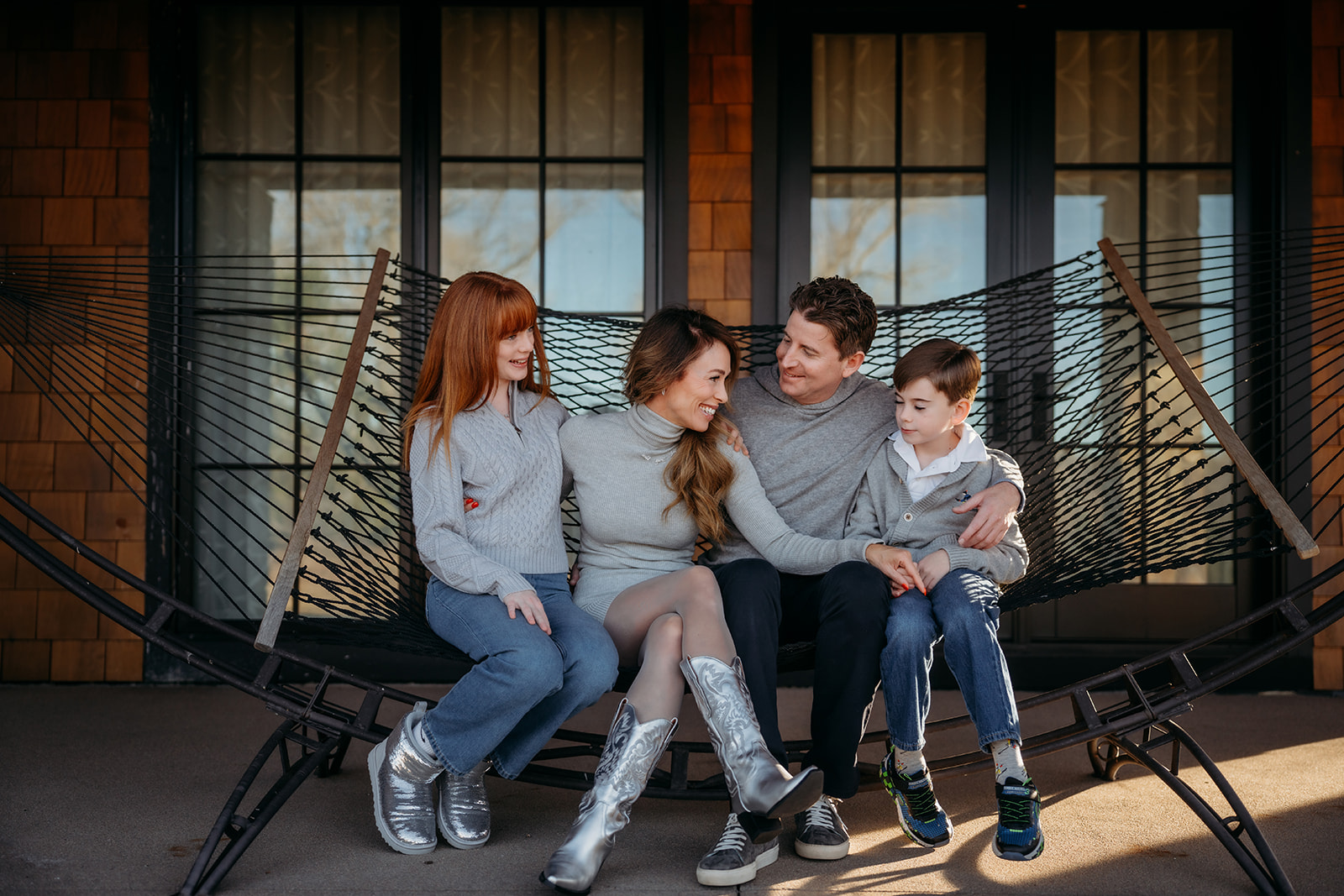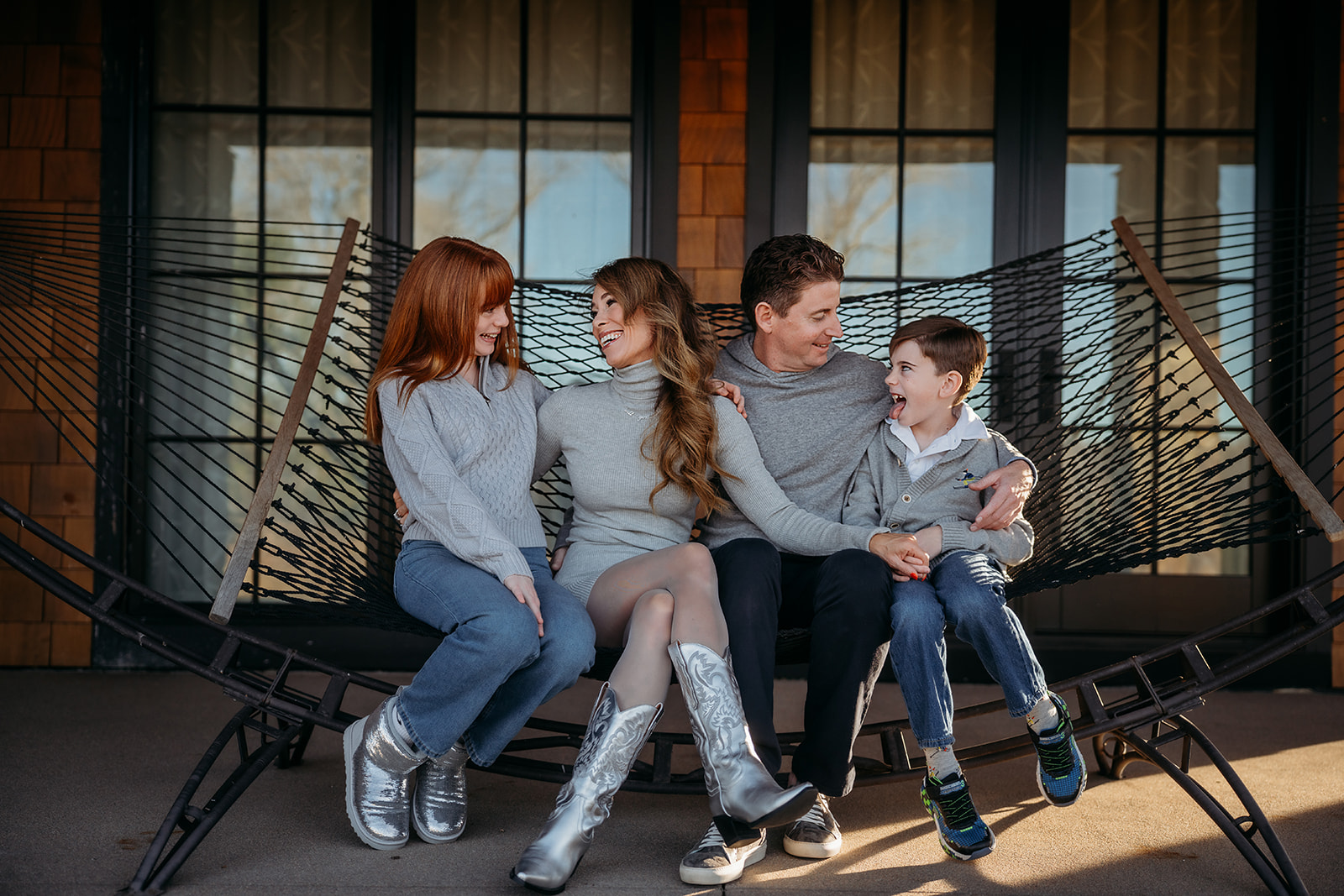 And when kids feel comfortable, the whole session flows more easily. You aren’t worrying about keeping everyone quiet or perfectly behaved in a new place. Instead, you get to do what you already do every day, hang out together, play a little, maybe pile into a hammock or chase the dog around the yard.