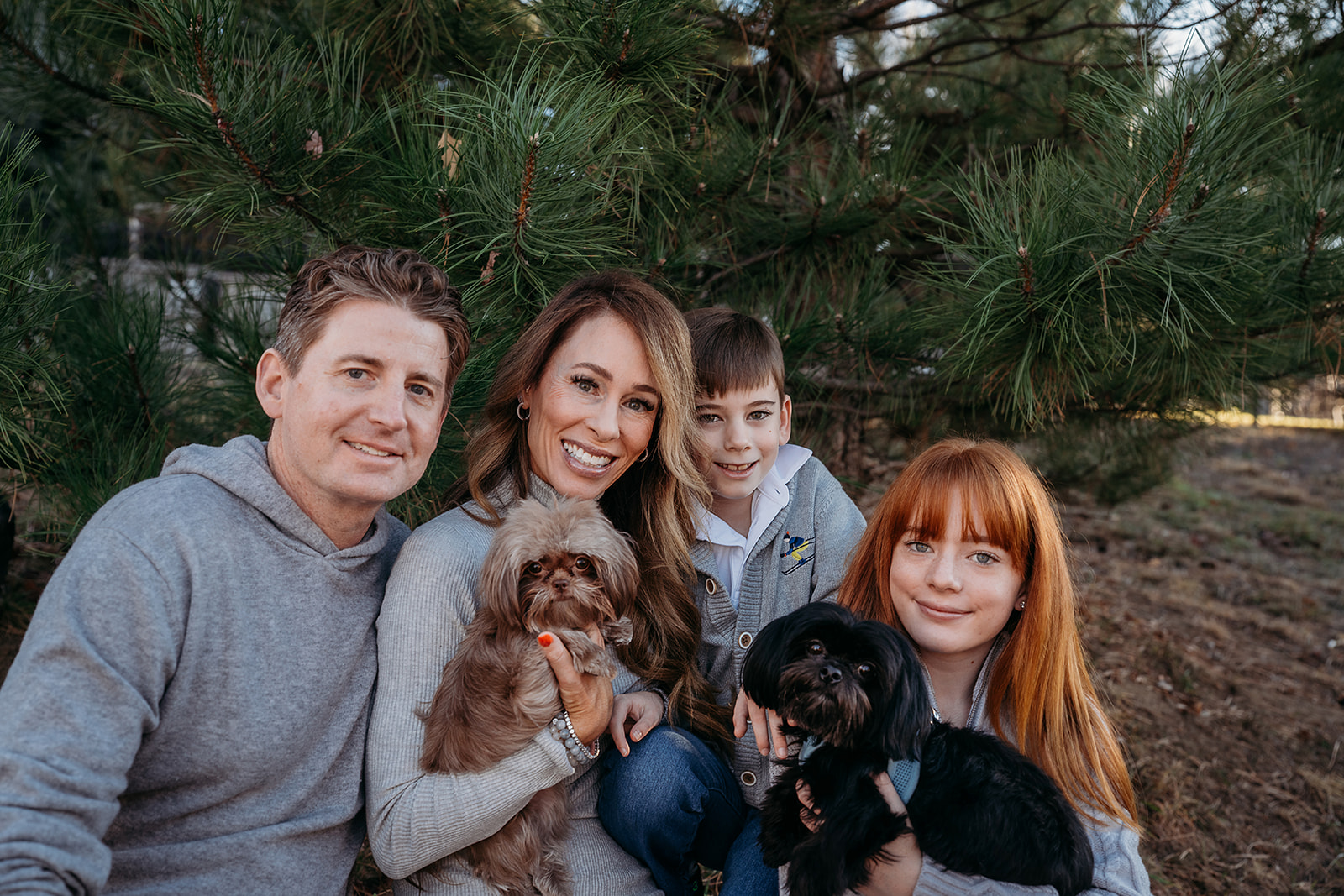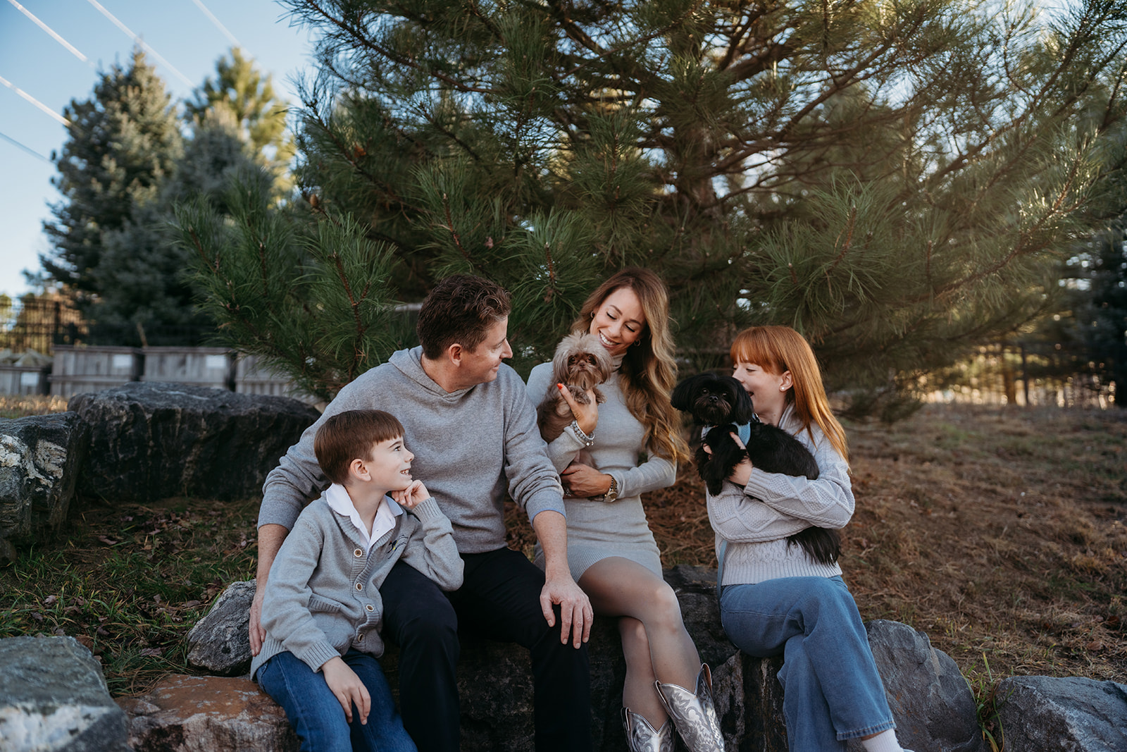 Absolutely! Backyard sessions are one of the best ways to include pets. Dogs tend to be far more relaxed in their own space, which means they naturally wander into photos, snuggle with kids, and become part of the story without stress. The Cooper family’s aging dog joining their session was one of the sweetest parts of their photos.